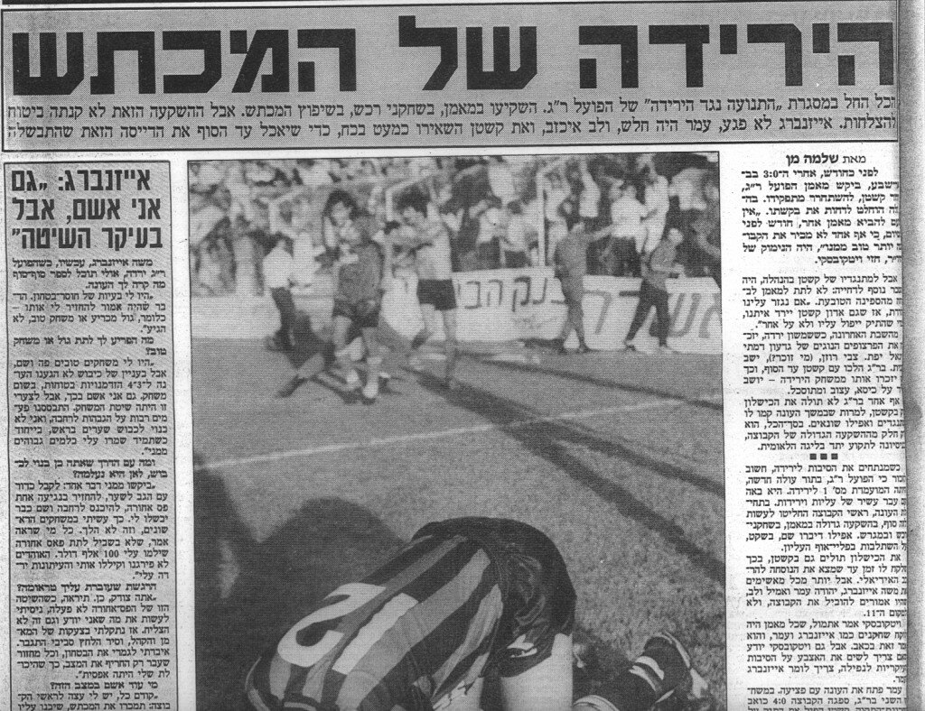 ביום רביעי הפסדנו מול חיפה של עטר ובנין. שלושה ימים אחר כך אשקלון היתה לנו על הראש (מחזור 24, 15.4.1995, כבשו: פלטשר 2, סרבין וחכים – א. ש.). ניצחנו 4 – 0.