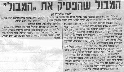 חדשות הספורט עם הכותרת שנמרחה לרוחב העמוד הראשון: "מפגן ברמת גן. הפועל ת"א עף"