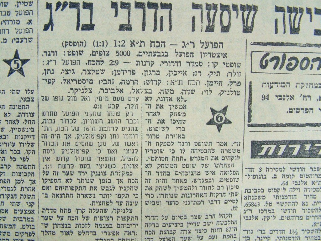 ולא כל יום נתקלים בתוצאה כזו. ומה שעוד יותר מדהים זה שרמת גן הוליכה 3 – 0 במחצית… את הדיווח הזה מצאתי במוסף "הבוקר ספורט" מיום 14.4.1939, כ"ו ניסן תרצ"ט. עיתון שהופיע אחת לשבוע במוצאי שבת, דפוס עזריאלי תל אביב, רחוב רענן 22. טלפון: 5377. עלות: 5 מיל.