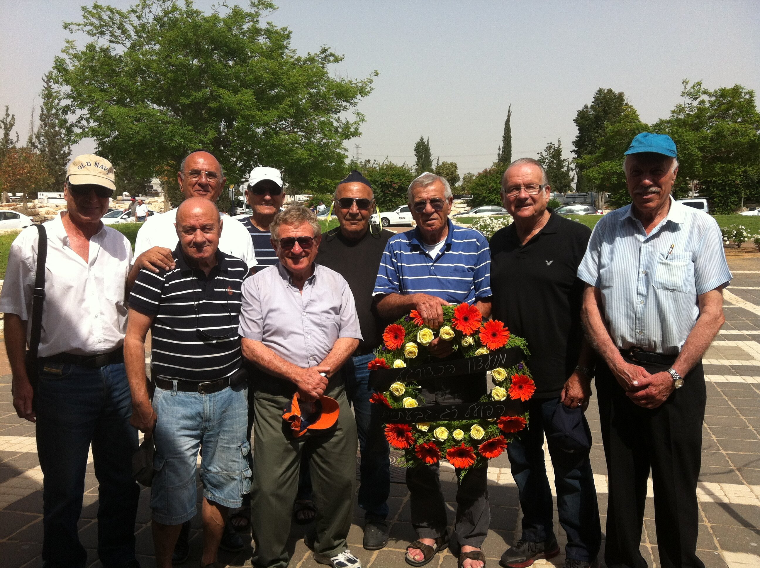 החברים של נחמי- מרדכי בנבנישתי, עוזי זנדר, ראובן כהן, משה פרל, זבולי אורן, גדי יניאק(היום יניב), דוד נתן, צביקה היימן עם הזר ואהרון (אהרל'ה) שרסטינסקי. היום בהלוויתו של שמואל נחמיאס