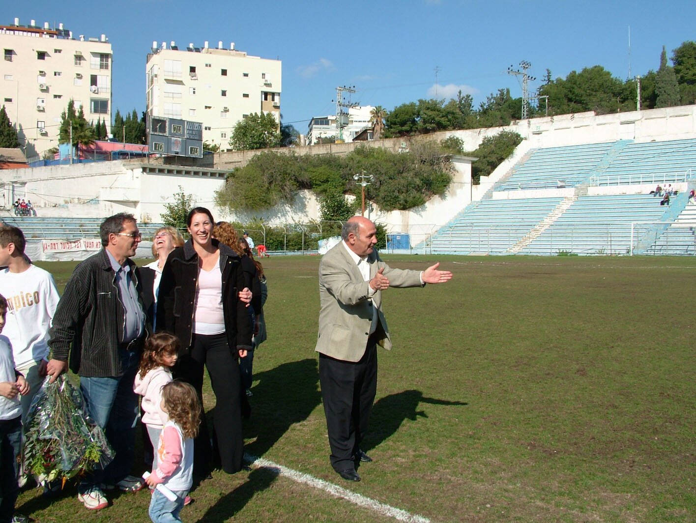 למרות היום החם שהיה, נחמיאס לבש חליפה, ונהנה מכל רגע על המכתש שאהב. חבריו הכינו לו שלט ואחרי שקיבל את הגביע רץ לעברם כמו בימים הטובים.