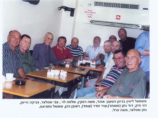 הפרלמנט המלא של שחקני שנות השישים בבית הקפה (צולם ע"י אלישע שוחט ב 2003)