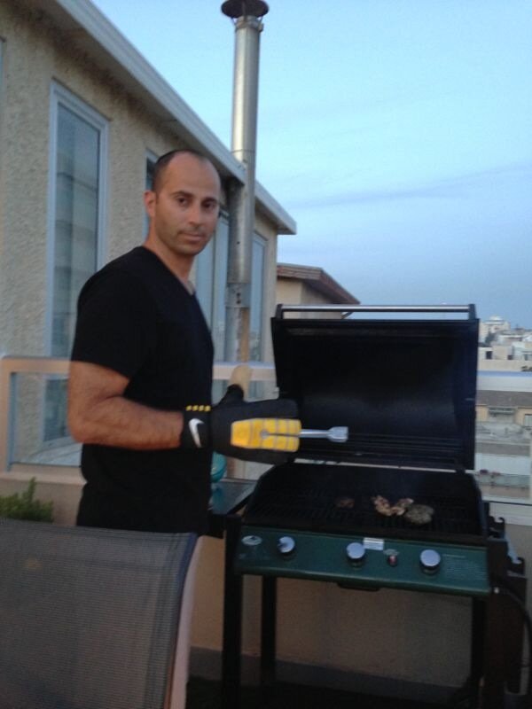 השוער ירון מליקה לא נפרד מהכפפות גם כשהוא עושה על האש