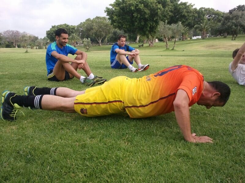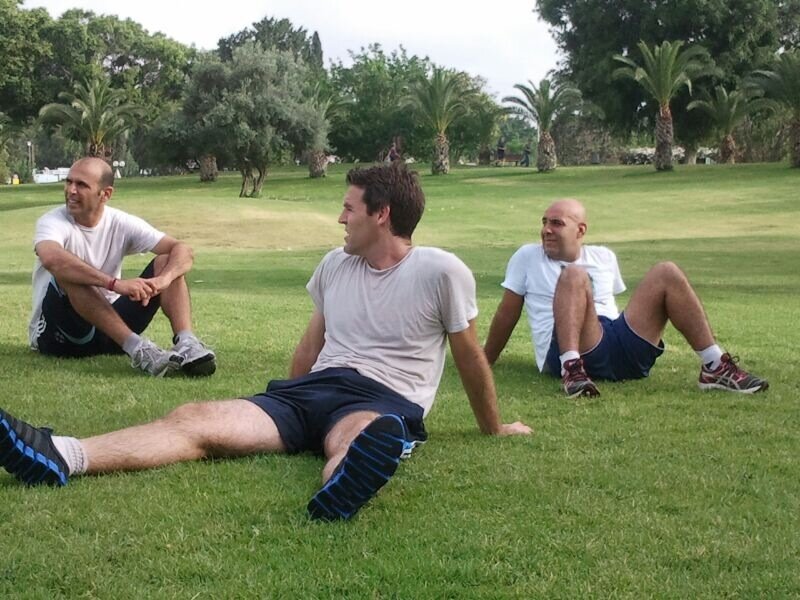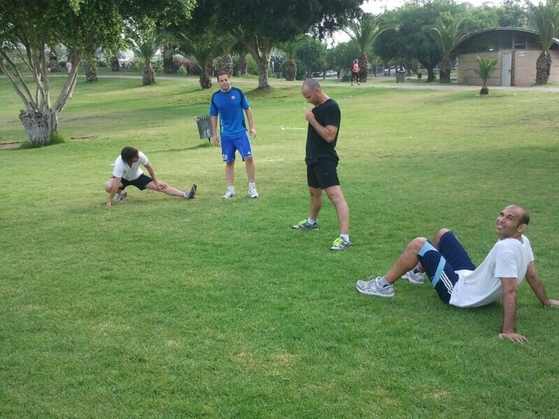 שבת בבוקר יום יפה. השחקנים משכימים קום ונפגשים בשבע בבוקר לריצת 4 ק"מ