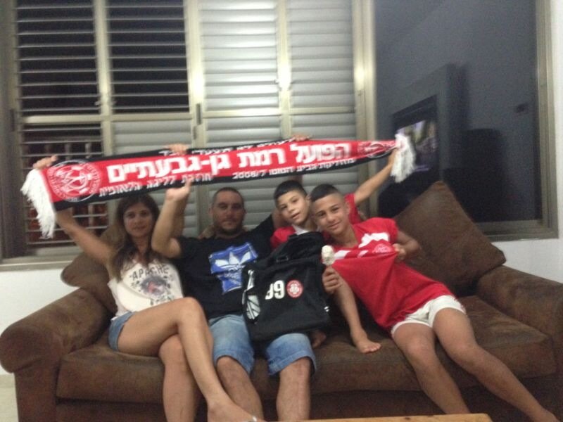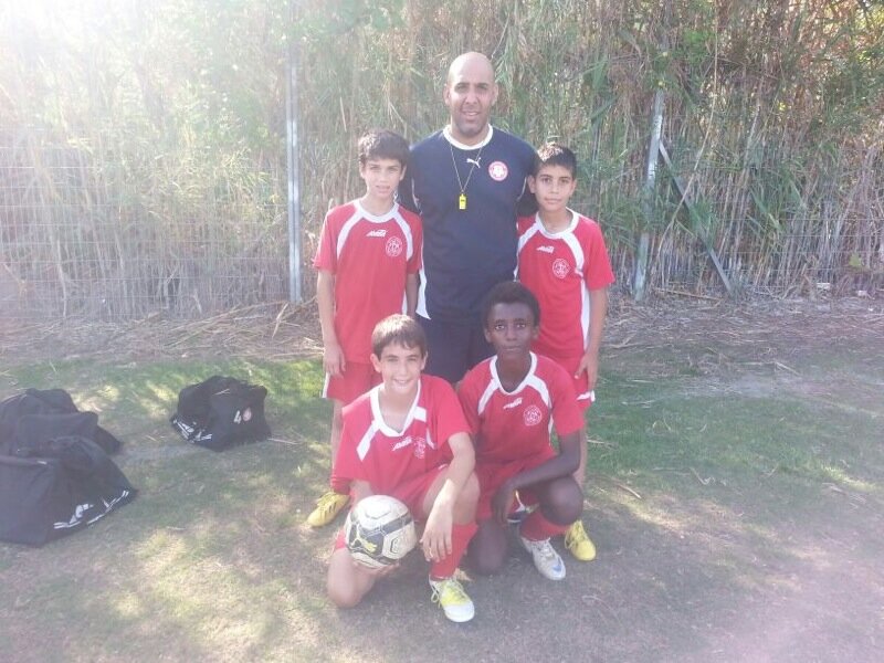 נועם סייג עם הבן הפרטי וילדי מחלקת הנוער אותם הוא מאמן