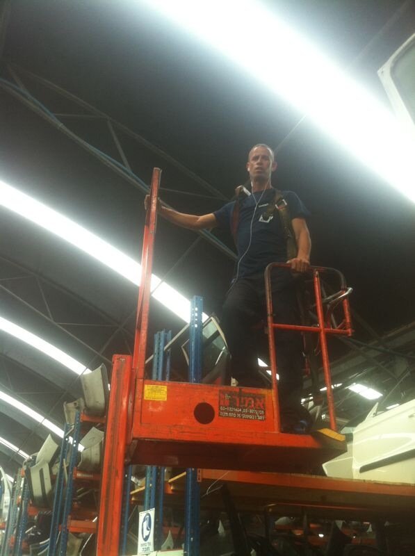הבלם גיא מסיקה מתרגל לאוויר הפסגות גם על גבי המלגזה בחברת המאגר