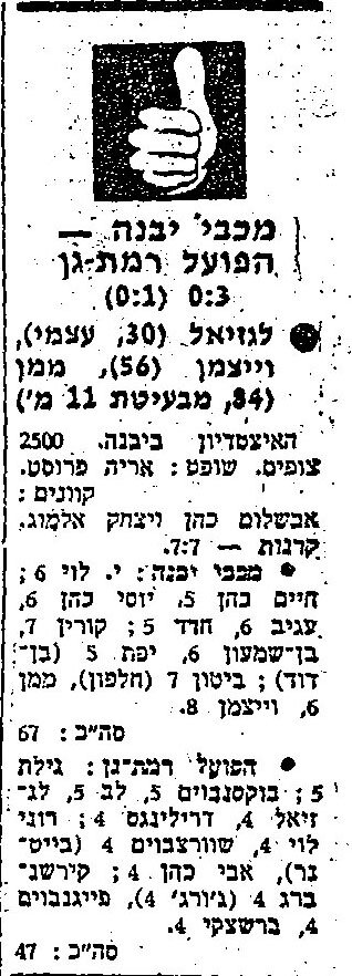 " אי אפשר לשכוח את זה. היה משחק חם, יבנה הובילו ואז מישהו זרק רימון גז מהיציע שלהם. לא מעט שחקנים שלנו התעלפו וביקשתי מליאון(מאמן הקבוצה דאז) שנרד מהמגרש אבל הוא העדיף להמשיך. בהתאחדות לכדורגל לא אישרו משחק חוזר והשאר היסטוריה".